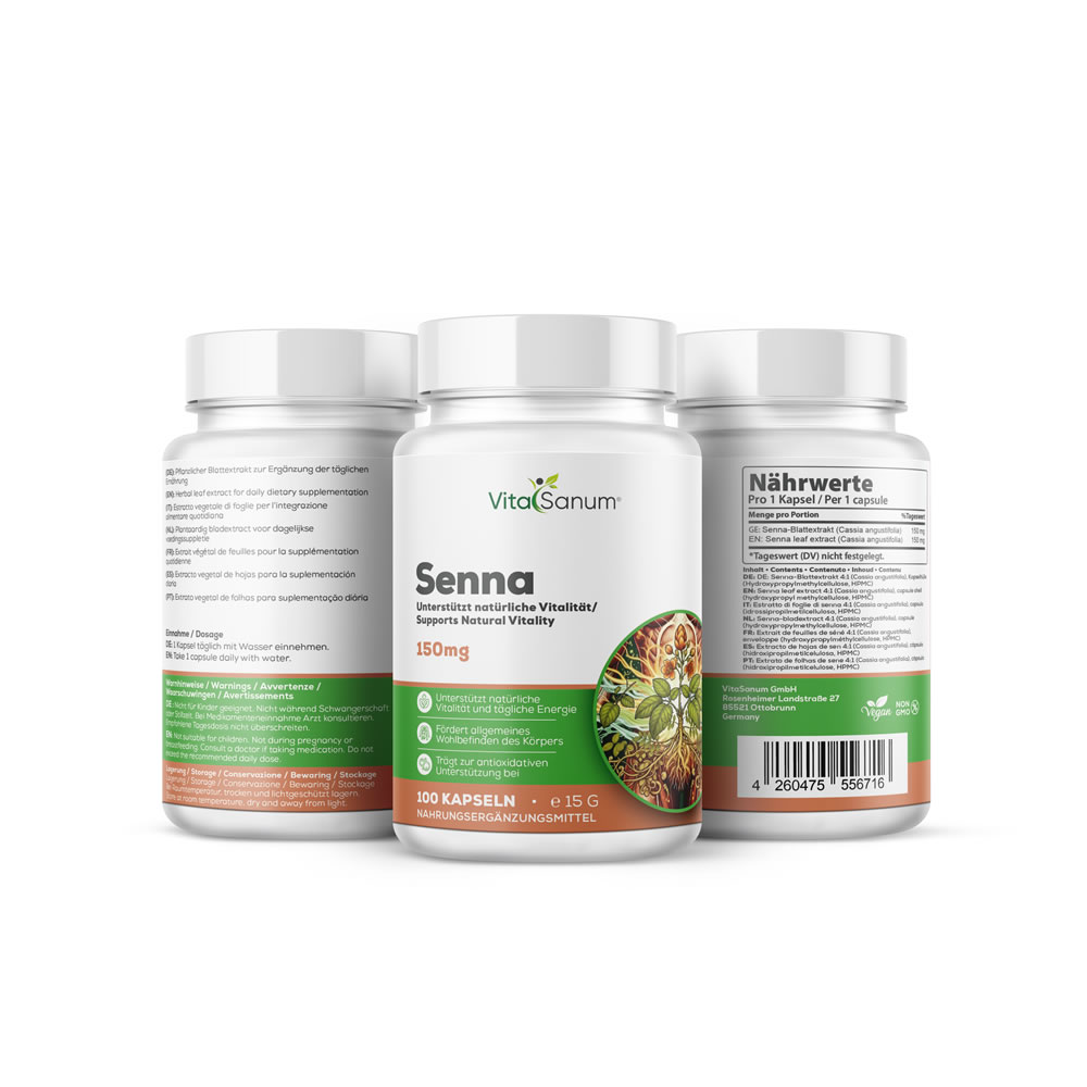 VitaSanum® Senna enthält Extrakt aus den Blättern von Cassia angustifolia in praktischer Kapselform zur Ergänzung der täglichen Ernährung. Senna ist eine traditionell verwendete Pflanze und eignet sich zur gezielten Anwendung im Rahmen einer bewussten Ernährungsweise.